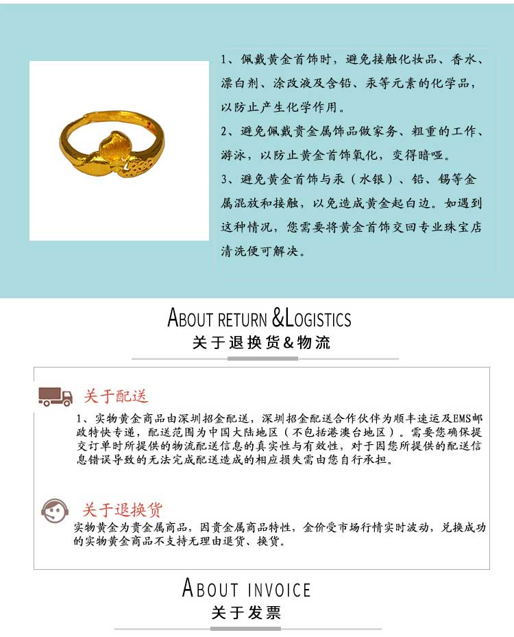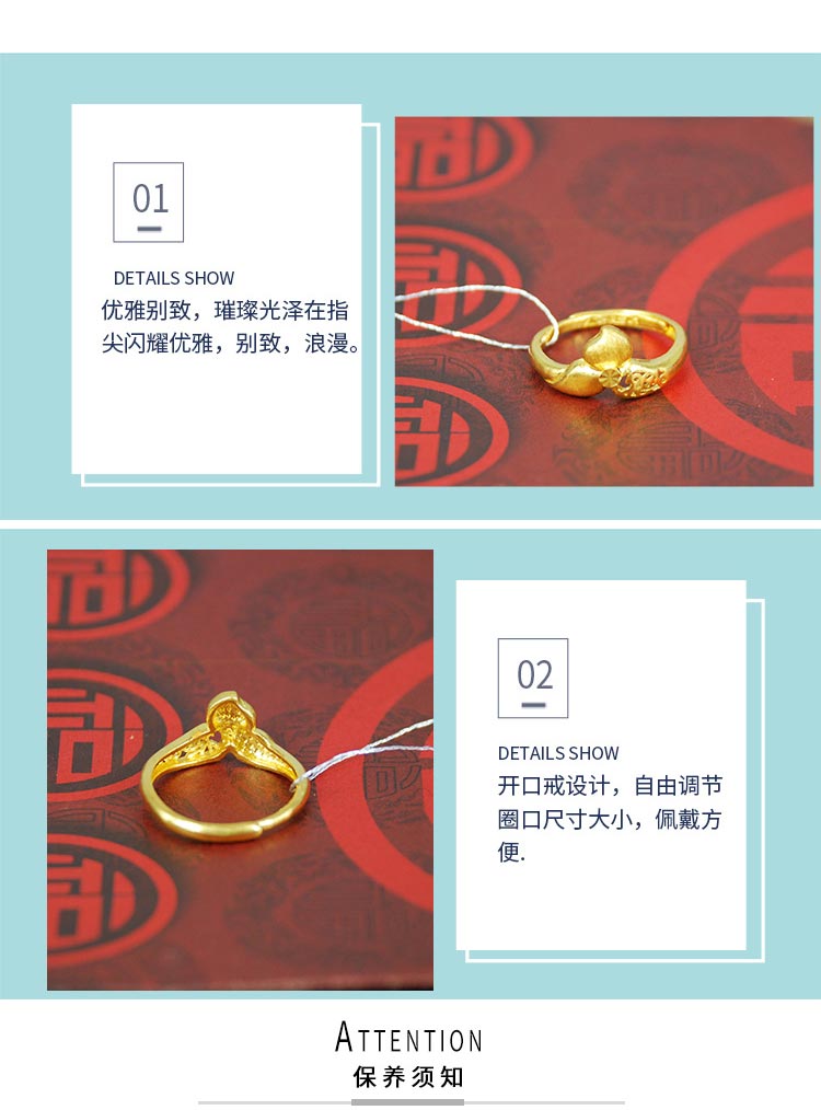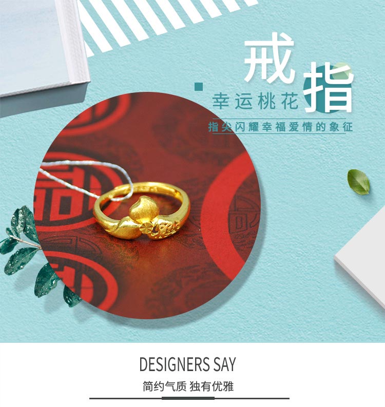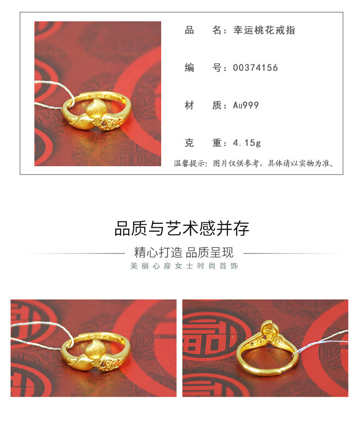 商品名称:招金 幸运桃花足金黄金戒指 Au999 4.15克