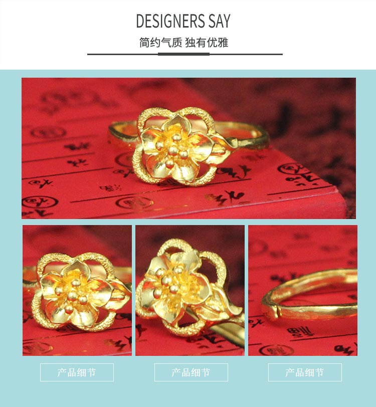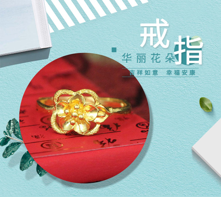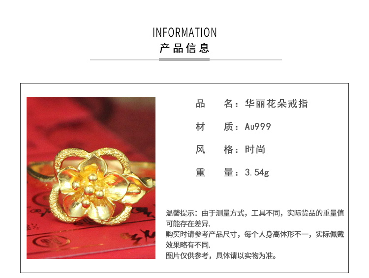 商品名称: 招金 华丽花朵足金黄金戒指 Au999 3.54克