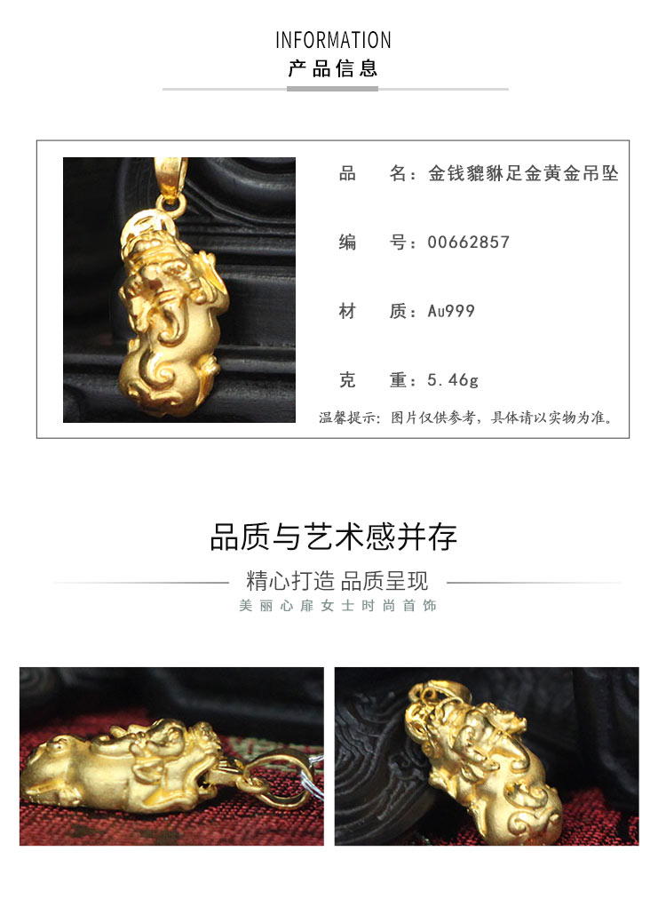 商品名称:招金 金钱貔貅足金黄金吊坠 Au999 5.46克重