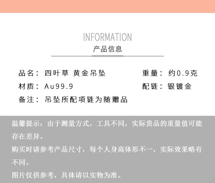 商品名称:9999黄金四叶草吊坠约0.8-0.9克